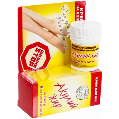 Oyoqlardagi konuslardan akula yog'ini ishlatish tavsiya etiladi, chunki uning tarkibida mavjud bo'lgan skvalamin kuchli antifungal ta'sirga ega va bo'g'imlarda tuzlarning cho'kishini oldini oladi. Omega-3 ko'p to'yinmagan yog ' kislotalari qon tomirlari devorlarini mustahkamlash va tozalashga yordam beradi, varikoz tomirlarining tiqilib qolishi va rivojlanishining oldini oladi.