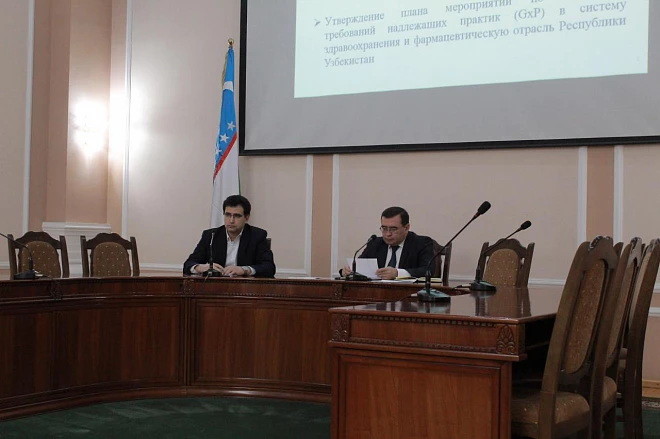 18 dekabr, sog'liqni saqlash Vazirligi, O'zbekiston Respublikasi bilan uchrashuv bo'lib o'tdi ishtiroki yetakchi mutaxassislar sohasida sog'liqni saqlash va farmatsevtika sanoati, shuningdek, vakillari klinik saytlar ishtirok klinik tadqiqotlar, qaysi masalalari bilan bog'liq ijrosini farmoni bilan o'zbekiston respublikasi Prezidenti, O'zbekiston Respublikasi №PQ-5707 "Bo'yicha qo'shimcha chora-tadbirlar uchun jadal rivojlantirish, farmatsevtika sanoati 2019-2021 yil", shuningdek, O'zr Vazirlar №788-son Nizom "yaxshi amaliyoti (GxP) farmatsevtika sanoati talablariga amalga oshirish bo'yicha qo'shimcha chora-tadbirlar To'g'risida".