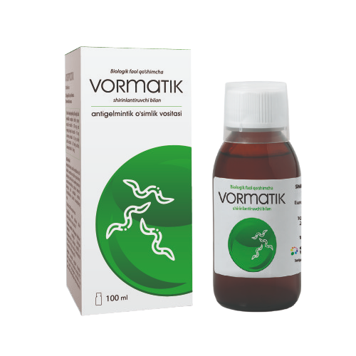 Shunday qilib, Vormatik tarkibida antiparazitar ta'sirga ega biologik faol moddalar majmuasi bo'lgan tabiiy o'simlik ekstraktlari mavjud va quidagilar uchun ishlatiladi: